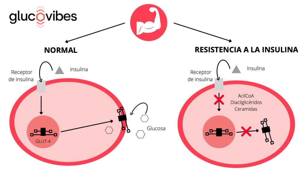 Varios estudios apoyan la hipótesis de que la alteración del metabolismo de los ácidos grasos contribuye a la resistencia a la insulina debido a alteraciones en el reparto de la grasa entre el adipocito (célula que almacena la grasa) y el músculo o el hígado. Este cambio conduce a la acumulación de ácidos grasos en los tejidos mencionados, que son sensibles a la insulina, lo que a su vez conduce a la resistencia a la insulina y por consiguiente a una reducción del transporte de glucosa.