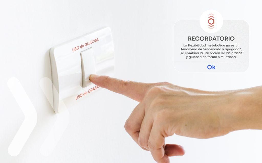 La flexibilidad metabólica no es un fenómeno de “encendido y apagado”, sino que implica ajustes sutiles estrictamente regulados. Es decir, se combina la utilización de las grasas y glucosa de forma simultánea. El cuerpo utilizará todos los sustratos disponibles, pero según la demanda, intensidad y situación, habrá un sustrato prioritario entre estos (2).