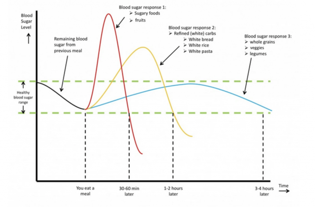 El índice glucémico de los alimentos se desarrolló en un intento de clasificar sistemáticamente los hidratos de carbono en diferentes grupos según los efectos integrados en el tiempo sobre la glucemia posprandial. Se ha demostrado que los alimentos con valores altos de IG se digieren y absorben más rápido, provocando mayores fluctuaciones en la glucosa en sangre por unidad de carbohidrato.