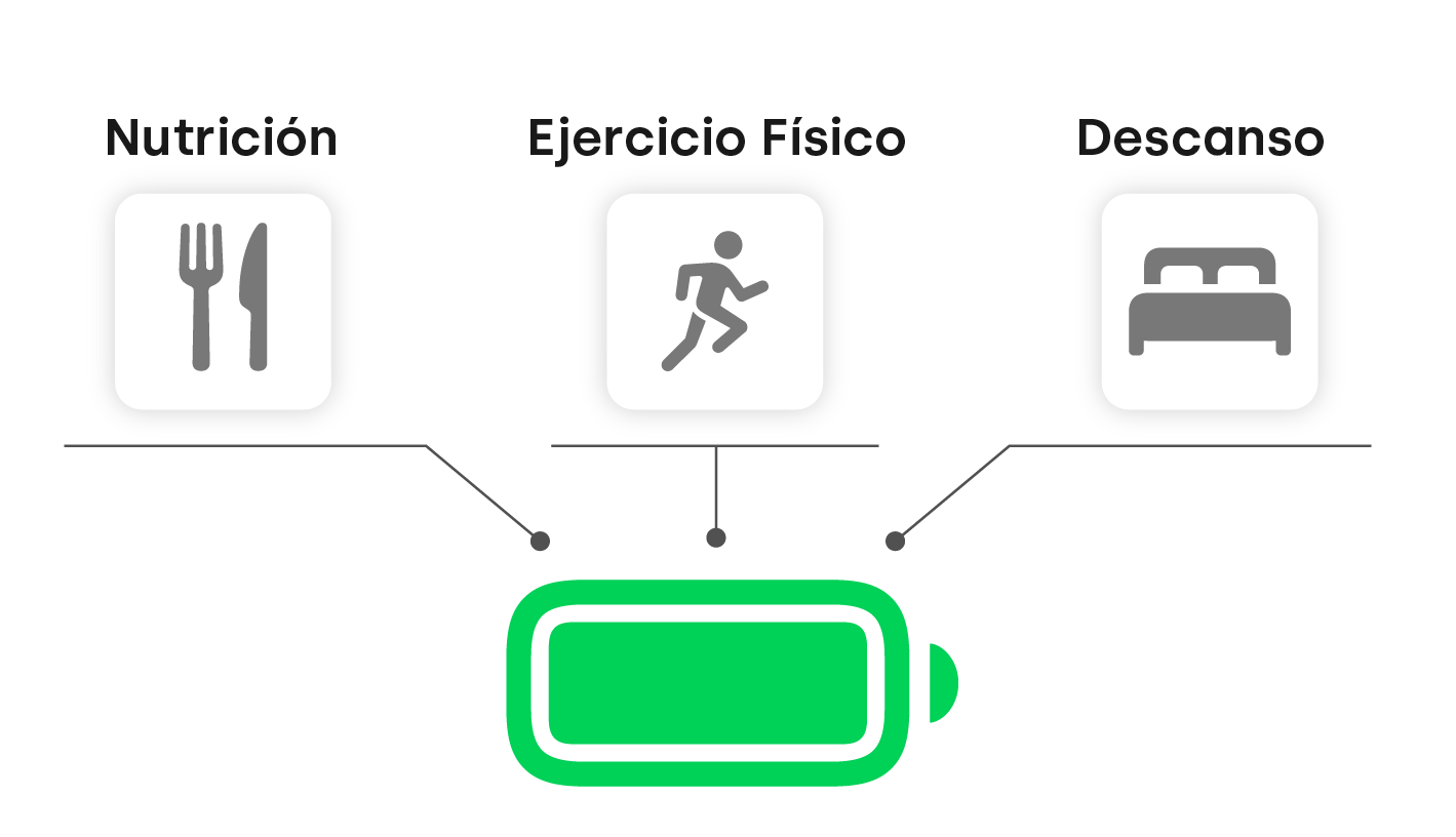La nutrición, el ejercicio físico y el descanso son tres variables totalmente relacionadas no sólo con el rendimiento deportivo, sino con la propia salud. Estos parámetros son precisamente los que usamos en Glucovibes para calcular tu VibeBattery.
