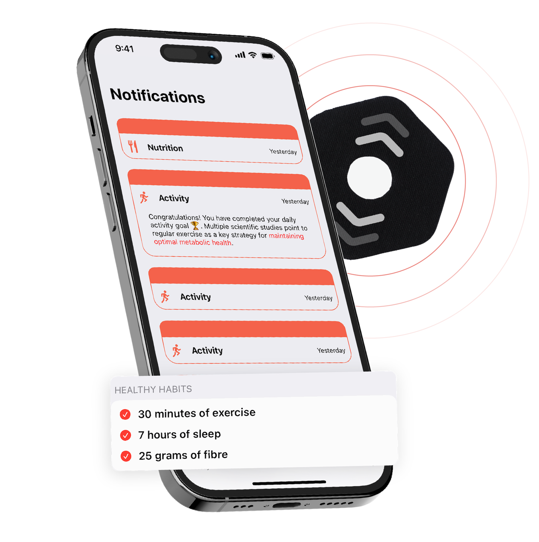 We support you in achieving your goals through the monitoring and measurement of nutrition, physical activity, rest and glucose data.
